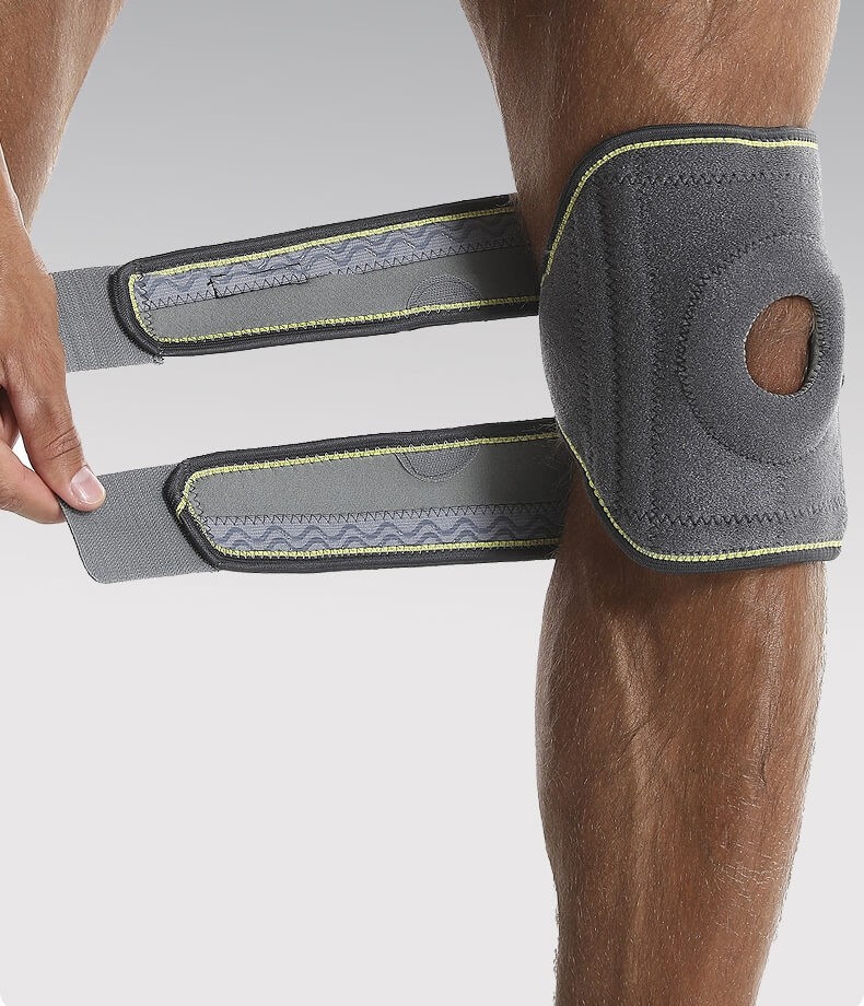- Komfort und Kompression:Erreichen Sie die perfekte Passform mit anpassbaren Seitenriemen. Passen Sie sie an Ihren bevorzugten Kompressionsgrad an, um eine bequeme und bequeme Passform zu gewährleisten. Bei Bedarf können die Riemen einfach auf die passende Größe zugeschnitten werden, sodass Sie Ihre Knieorthese für optimalen Komfort individuell anpassen können.
